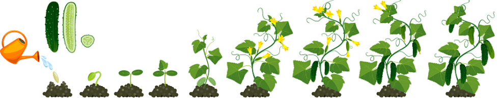 Ciclo de vida de la planta de pepino. Imagen creada por MariaFlaya obtenida de freejpg.com.ar