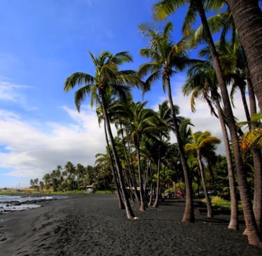 Playa de arena negra. Punaluu Black Sand Beach. Hawai. Fotografía de Private Homes Hawái