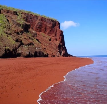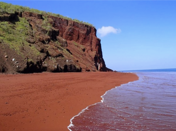 Playa de arena naranja. Isla Galápagos. Fotografía obtenida de elcorreo.com. Visita para ver otras playas hermosas de otros colores.