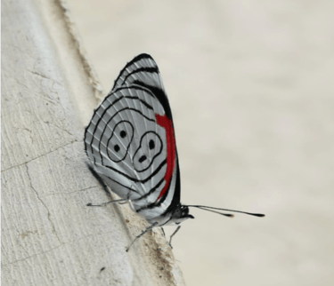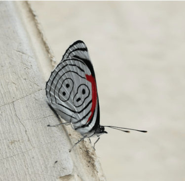 En el bosque mesófilo de Oaxaca, existen muchas especies diferentes de mariposas y pude conocer una muy particular que habita desde el norte de Veracruz en México hasta el norte de Bolivia. Una mariposa de la que jamás había escuchado hasta que la gente del lugar me dijo cómo le llamaban. Parada con sus alas dobladas, pareciera una mariposa blanca con una gran franja roja y líneas negras que dibujaban el número 88 al centro. Pero cuando vuela o cuando toma el sol y mueve sus alas, se puede apreciar que del otro lado sus alas son color negro o café muy oscuro con franjas de color verde, azul o amarillo de tonalidades metálicos muy intensos. Es la mariposa 88.