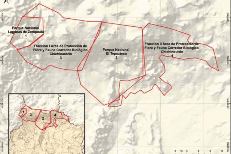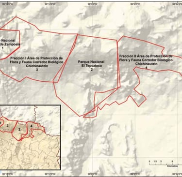 Corredor Biológico Chichinautzin. División en Parques Nacionales y Áreas de Protección.